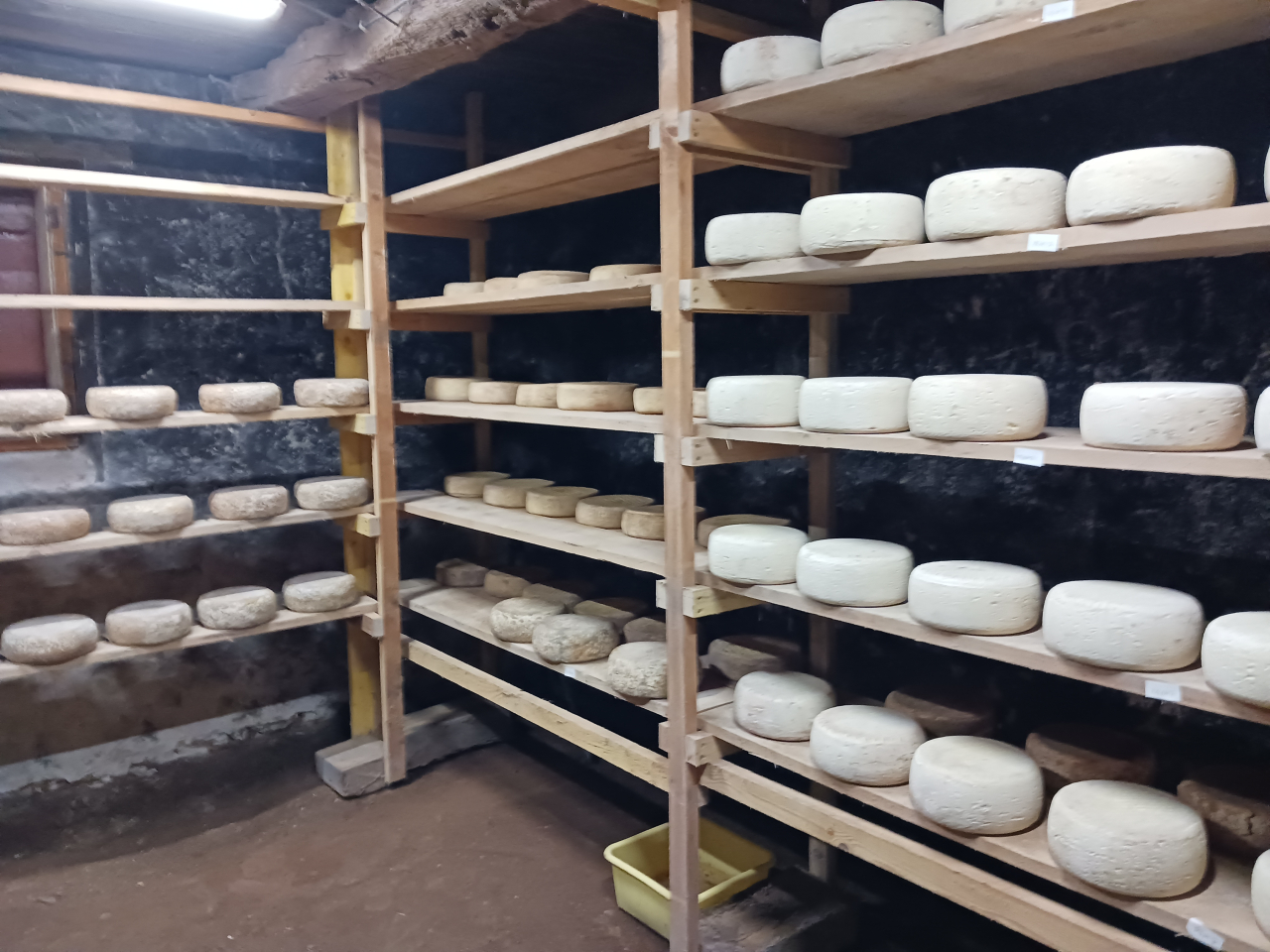 La cave d'affinage de la tome de Chalosse avec dégustation de fromage et de saucisson de boeuf.
